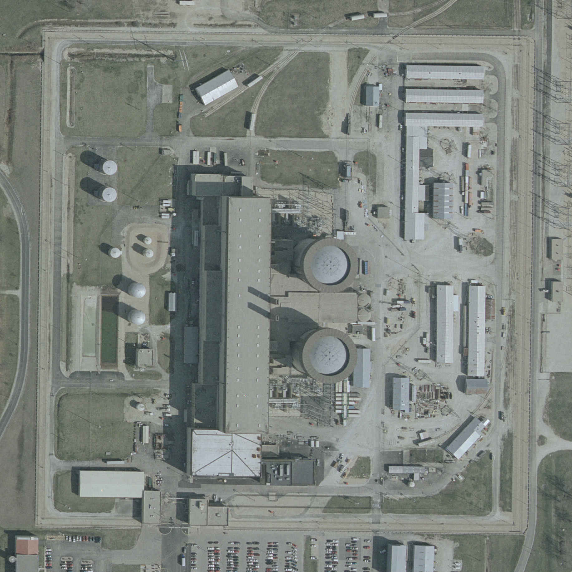 Few high-resolution satellite images of US nuclear power plants are available. Exceptions are this one at Braidwood, IL, Dresden, IL, Salem-Hope Creek, NJ, Oyster Creek, NJ, and McGuire, NC,available from USGS satellite photo coverage.