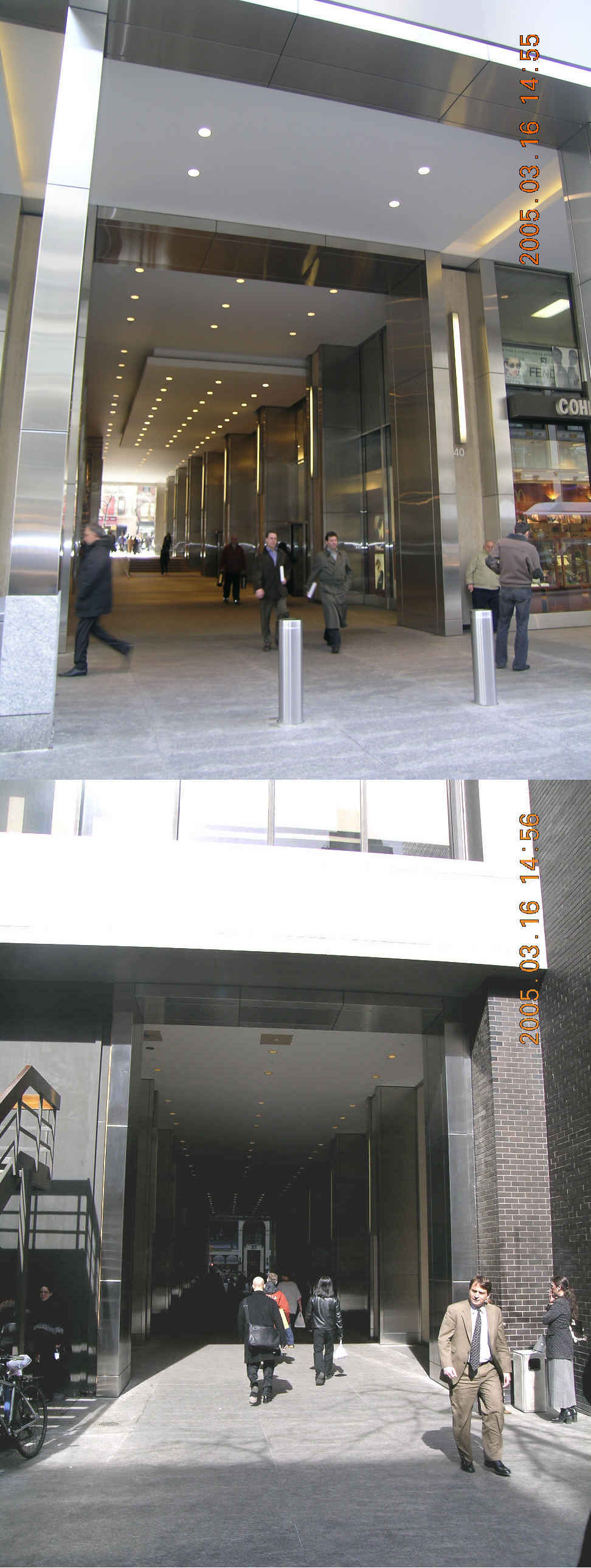 Since 9/11 Natsios Young Architects has been observing alleged upgrade of building and site security against terrorist attacks in the New York City region, some seemingly serious around governmental structures, but most ineffectively lightweight to non-existent at other facilities, accompanied by a campaign of security warnings and protection promises by officials and property owners. Here are photos taken yesterday of prominent mid-town Manhattan "anti-terrorist" protection pretense, non-existent, humorous and fake.