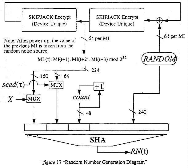 a) Read in X, (seed(Tau)) at power-up or beginning of each session.b) If no X, (seed(Tau)) has been read in at power up and a random number is needed, then access the MI generation process 4 times.