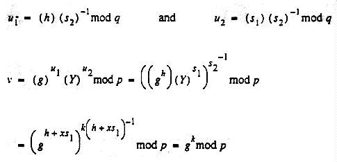 The recipient then checks to see that v mod q is the same as s1. If they are equal the signature is verified.