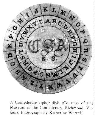 The South's cryptographers also put their faith in BLAISE DE VIGENERE'S method, with its table of 26 alphabets, row shifts, and KEY alphabet for encipherment. Yet because of transmission errors by their own cipher clerks using MORSE CODE, the Confederate officers often had a more difficult time deciphering their own communiques than did the Union cryptanalysts (see THE SACRED THREE).