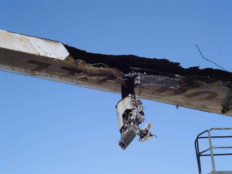 ![]() Source Capt Eclectic writes: "The mangled bit of mechanism is the outboard flap actuator."