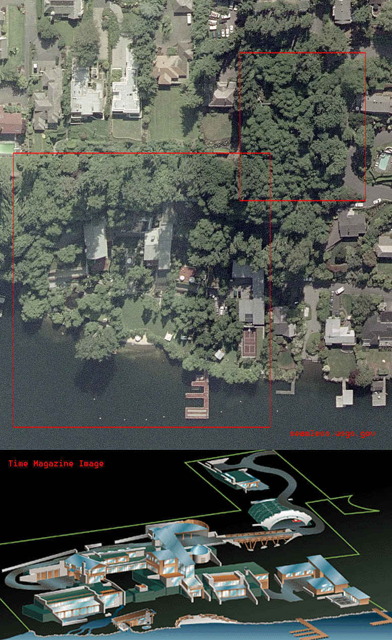 Facility and Gates Residence located on Lake Washington. Entry into