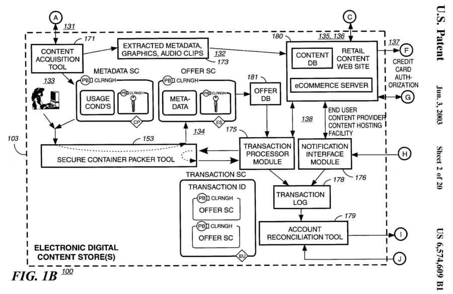 transferring the encrypted first encrypting key, along with the metadata and usage condition data, to the electronic store.