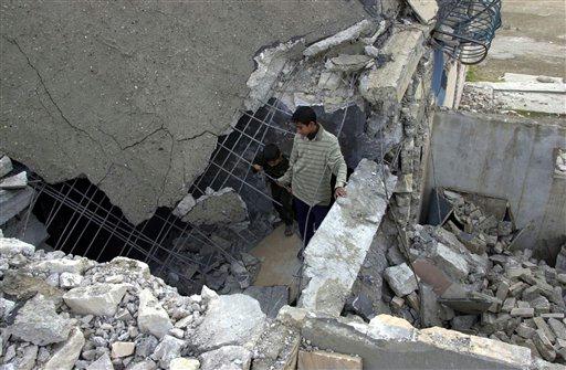 Iraqi boys inspect the rubble of a police station in Ramadi, Iraq, Friday, Dec. 24, 2004, after it was destroyed when insurgents planted explosives Thursday night. (AP Photo/Bilal Hussein) |
