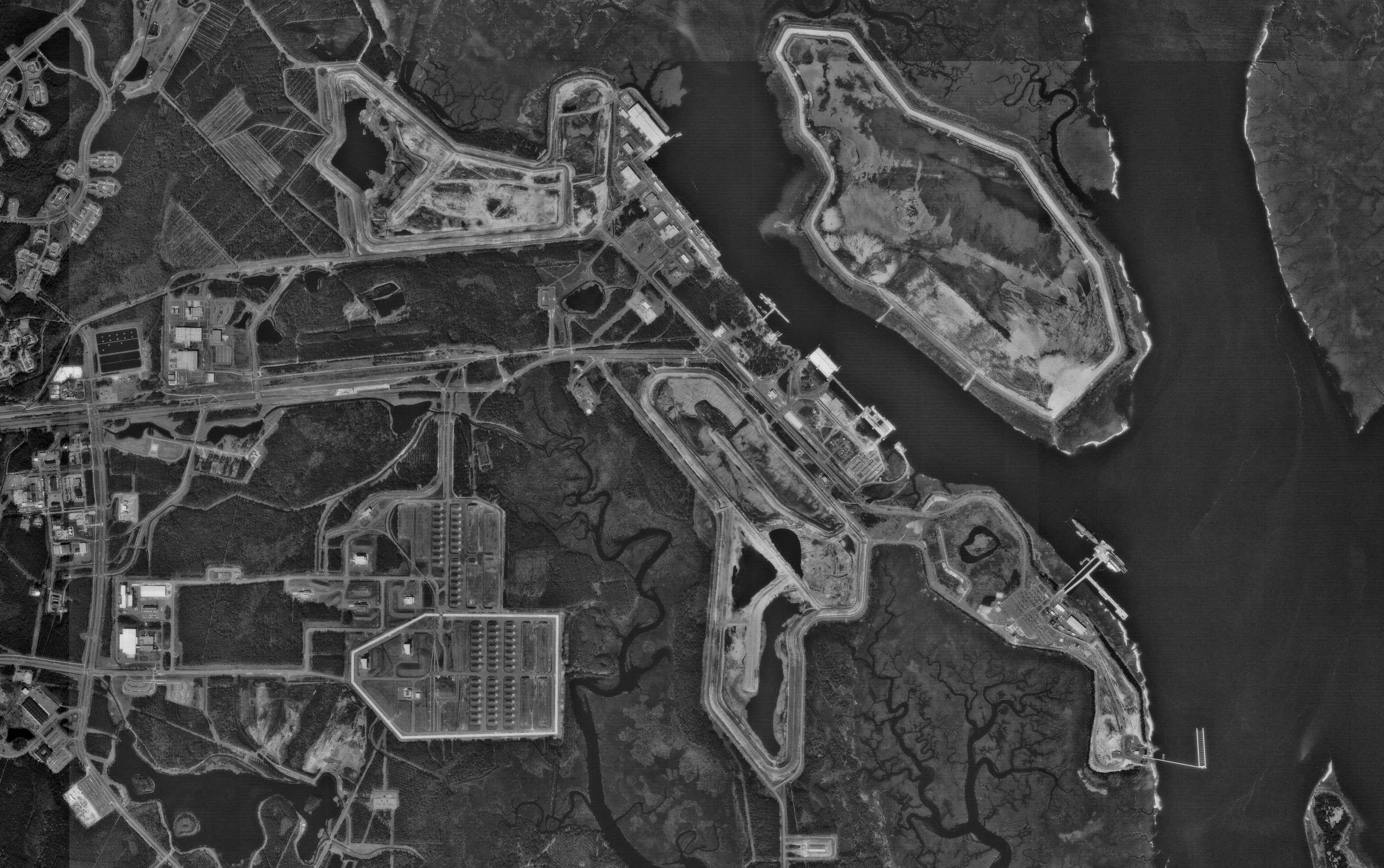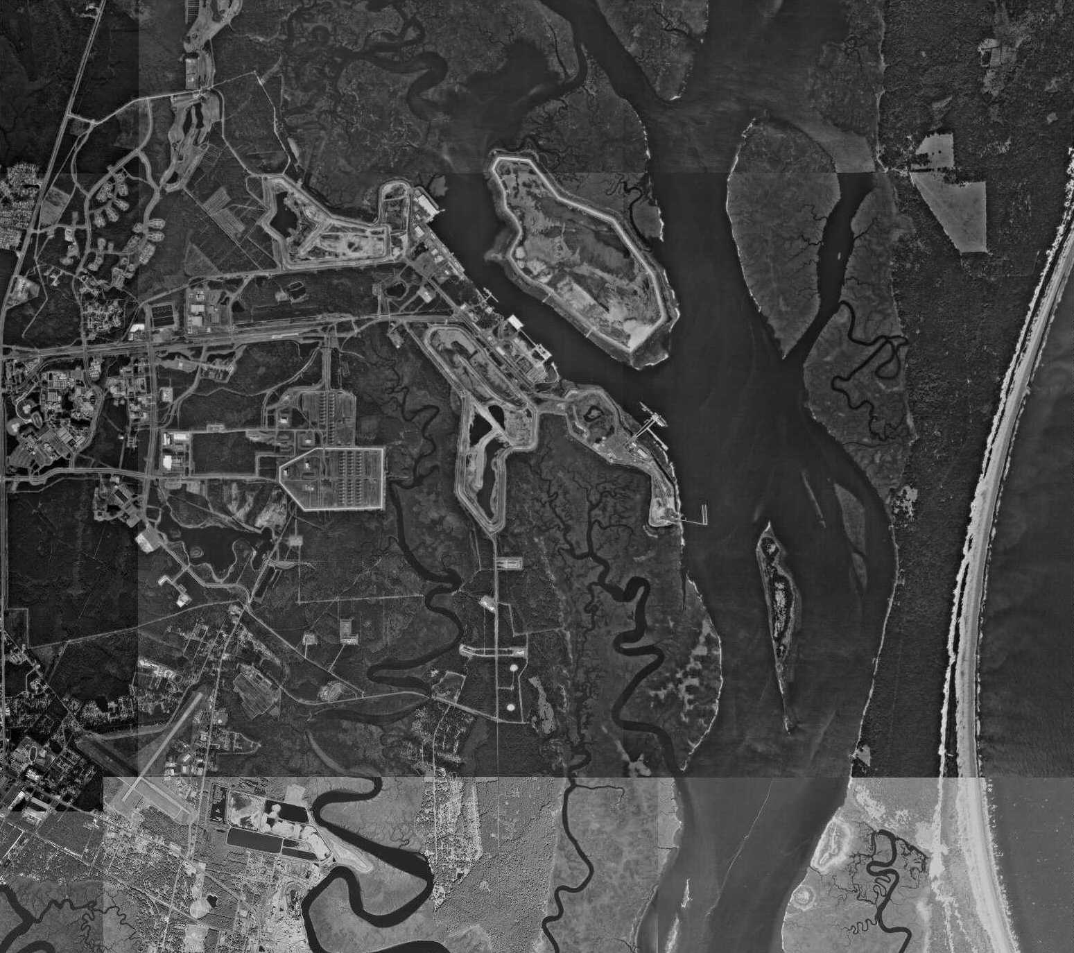 The Army began to acquire land at Kings Bay in 1954 on which it planned to build a military ocean terminal which would be used to ship ammunition in event of a national emergency. Construction began in 1956 and was completed two years later at a cost of $11 million. The most prominent feature of the terminal was a 2000 footlong, 87 foot-wide concrete and steel wharf, with three parallel railroad tracks, enabling simultaneous loading of several ammunition ships. A 10 mile-long, 200 foot-wide channel, dredged by the Army to 32 feet provided access between the bay and the ocean via the St. Marys channel. Elsewhere the Army built 47 miles of railroad track. The base was never activated.