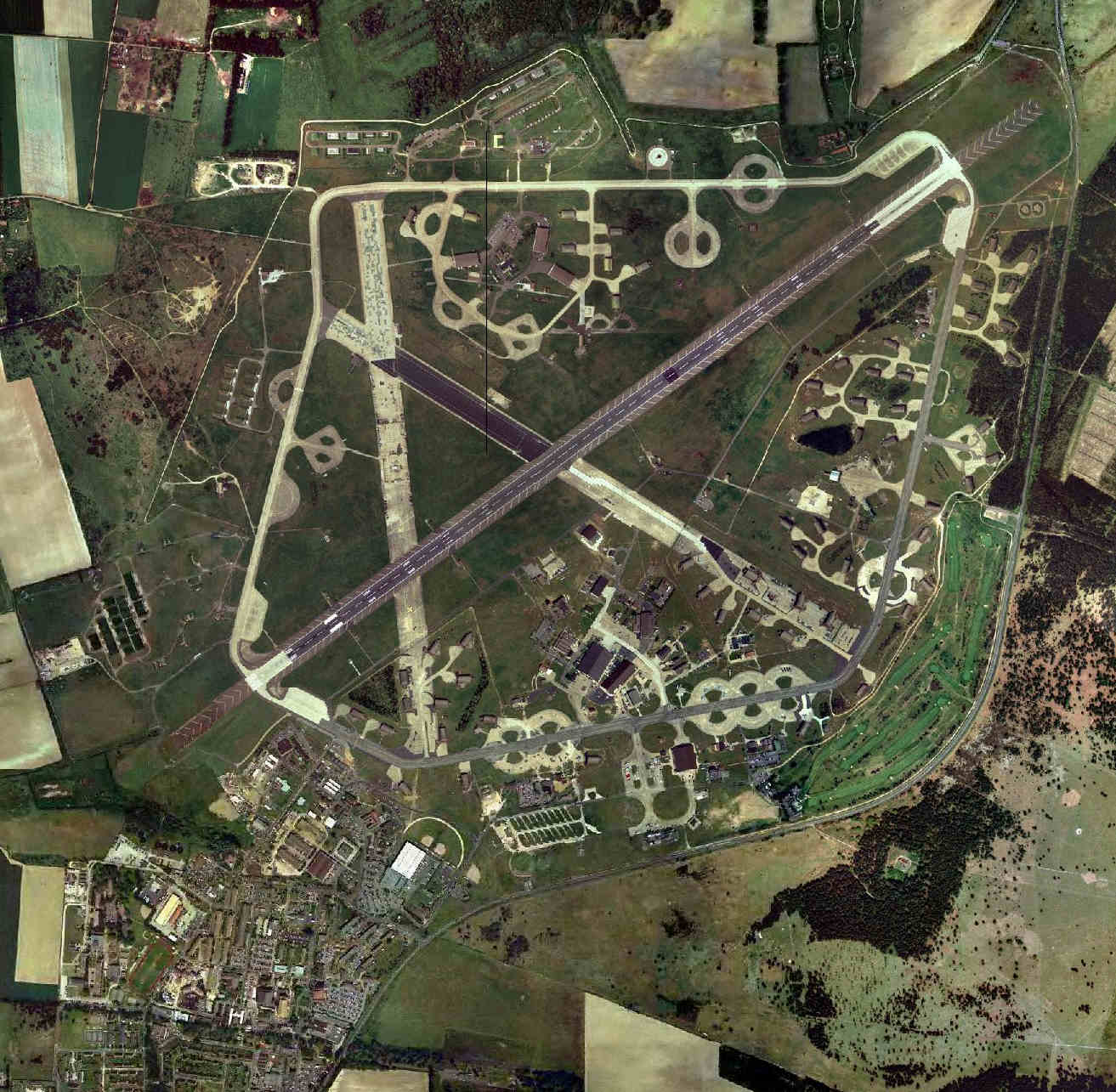 | The double-fenced area is located at upper left of this RAF Lakenheath