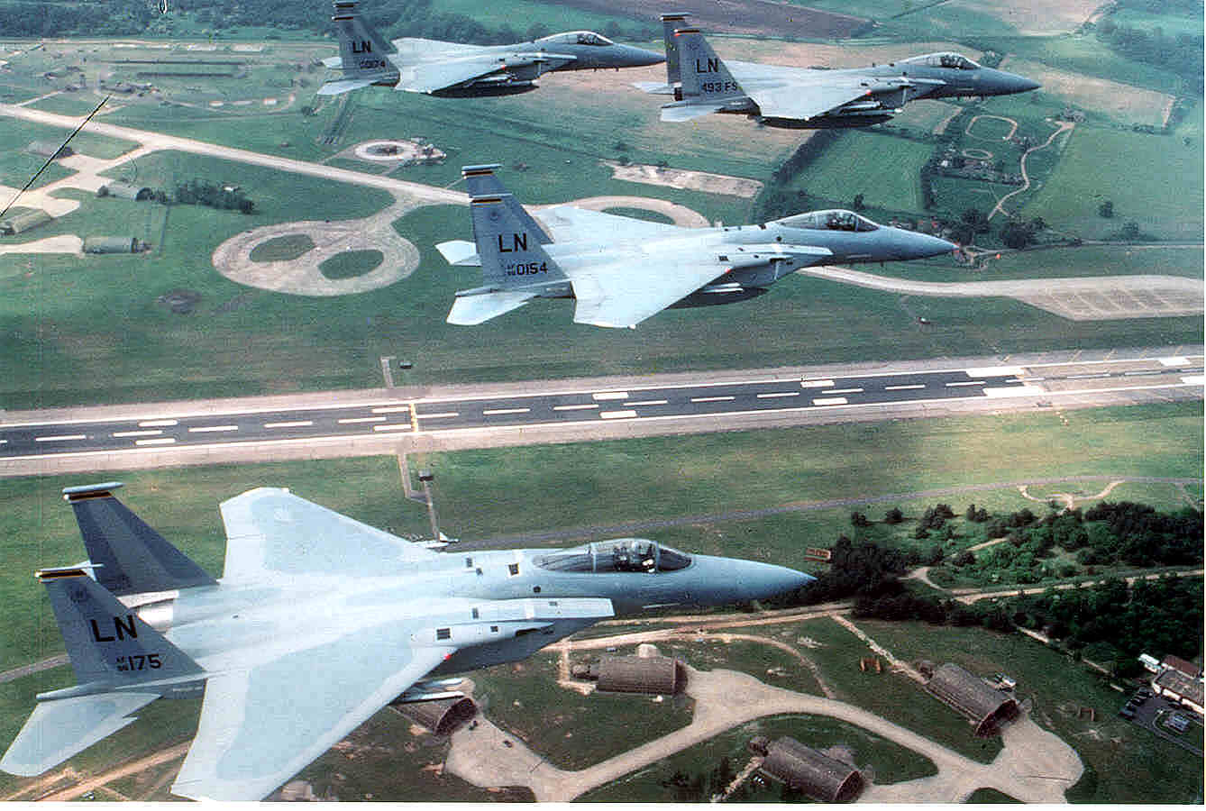 Technology As the U.S. Air Forces in Europes only F-15 fighter wing, we bring unique air combat capabilities to the fight, such as the most advanced precision guided munitions (GBU-15 and AGM-130), the Rapid Targeting System for near real time, airborne re-targeting and the APG-70 radar, the worlds most advanced in range, tracking, ECCM and ID capability. We provide all-weather, day or night air superiority and air-to-ground precision combat capability and multi-staged improvement program avionics. The F-15E Strike Eagle is the worlds most capable air-to-ground, precision strike fighter, employing PGMs using Low Altitude Night Targeting and Infrared Navigation (LANTIRN) system technology. The F-15C Eagle is the world's premier air-to-air superiority fighter, capable of eliminating enemy air threats anywhere, anytime. When teamed together, the F-15E and F-15C provide an air combat capability never before seen in the history of airpower.