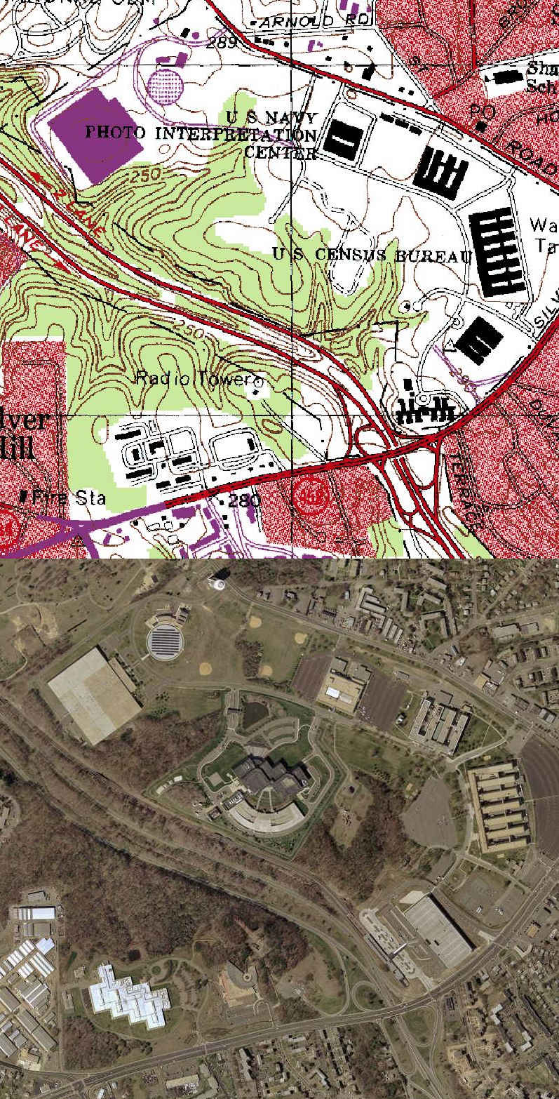 4 June 2004. A. reports that the facilities are those of the National Maritme Intelligence Center and Census Bureau, and points to this map: