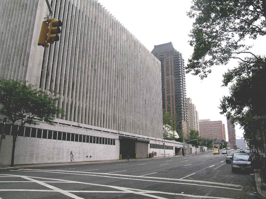 | Rear of Lincoln Center, showing entrances to parking garages below.