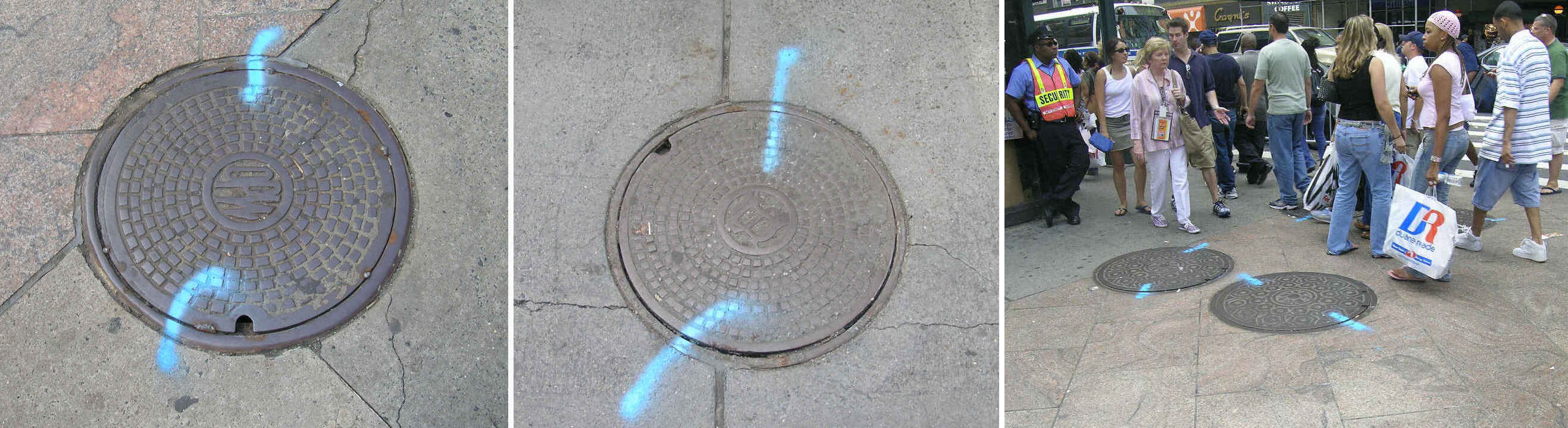 | Manholes along 7th Avenue. The one at left tack-welded. None of the others. |