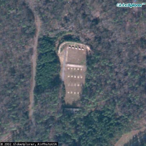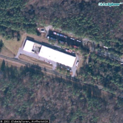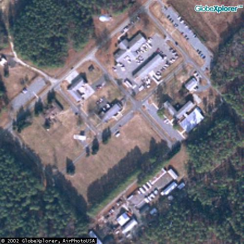 It is not clear if these and those at right are CIA facilities; they are shown outside of John Pike's property boundary above but are linked to the STC by a footbridge (see upper right of large photo). They may be used by an affiliated government agency or private organization. |