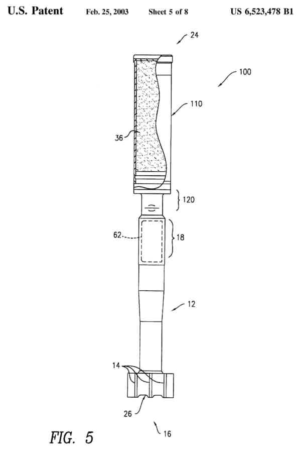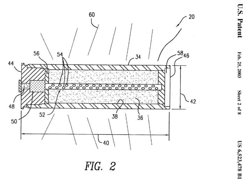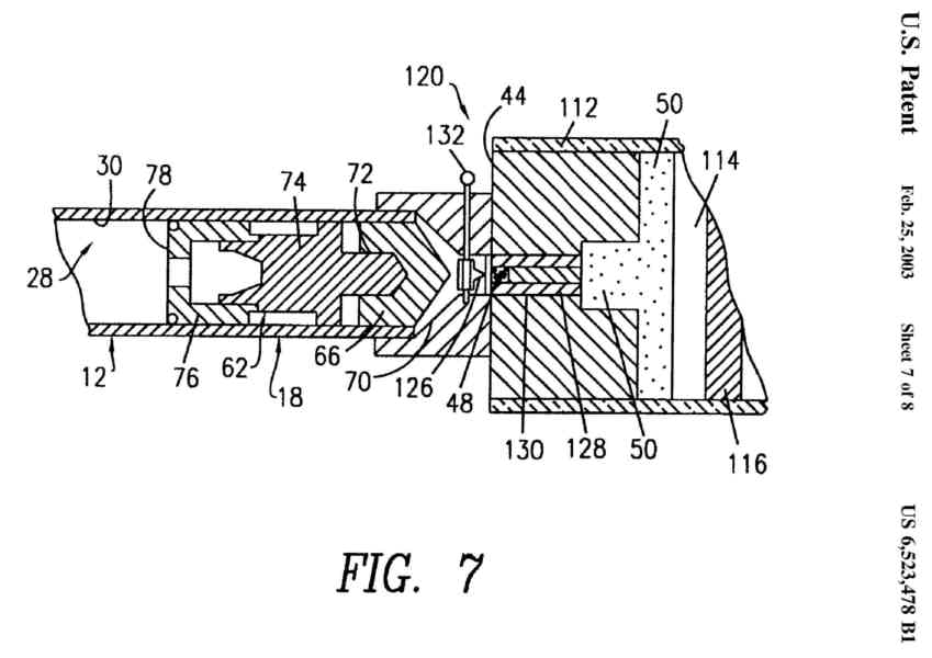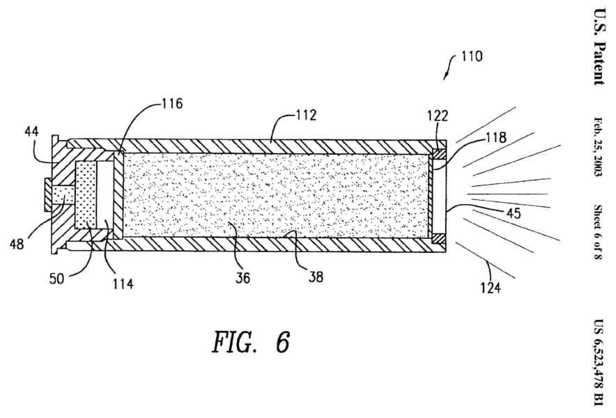 Adjacent to the open area 114 on the opposite side of the propellant 50 is