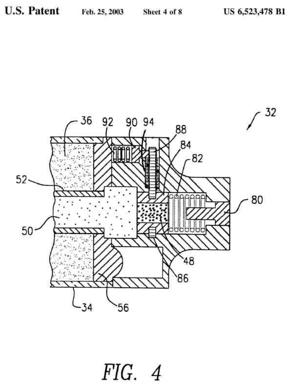 62. The momentum of the fired bullet is transferred from the anvil 66 to