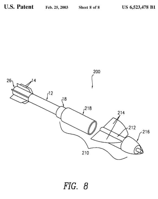 modified pay load assembly 210 in FIG. 8. The projectile 200 is capable of