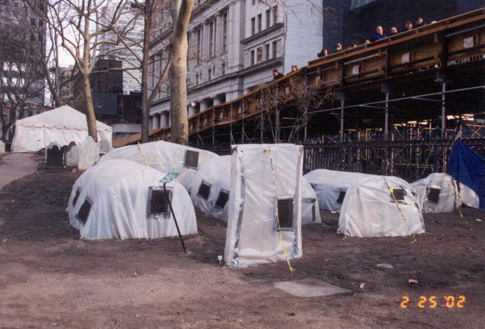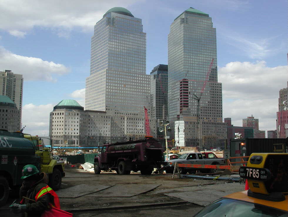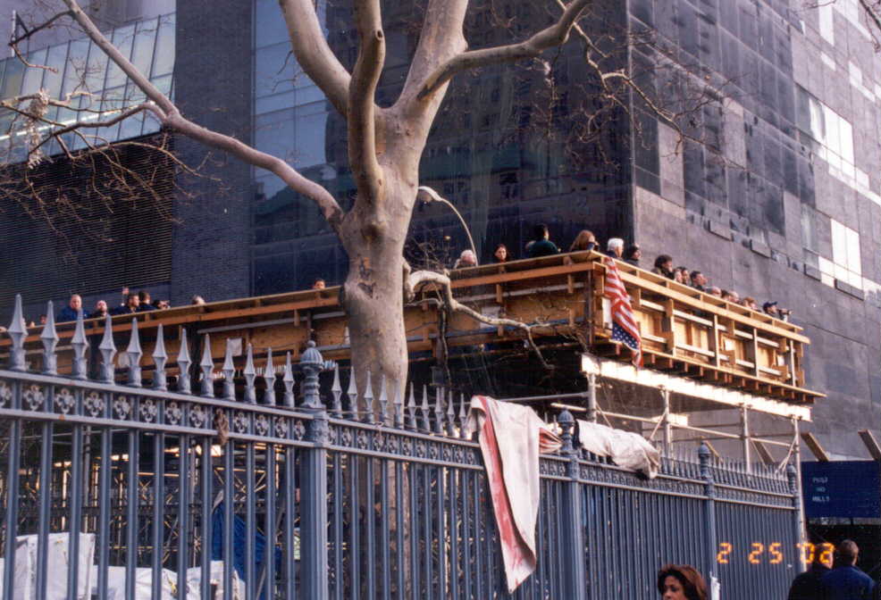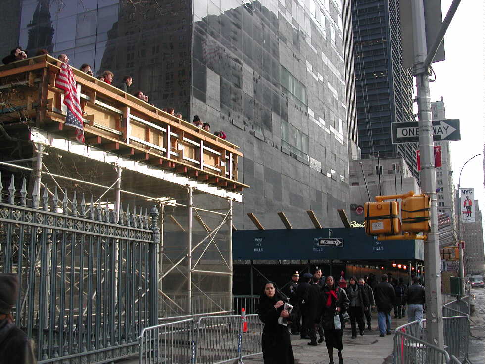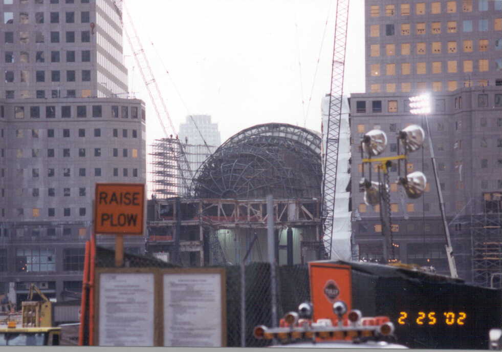 The following photographs taken on February 25, 2002 (except as noted), show a mix of the public observation platform, public memorials, temporary facilities and construction activity at the WTC.