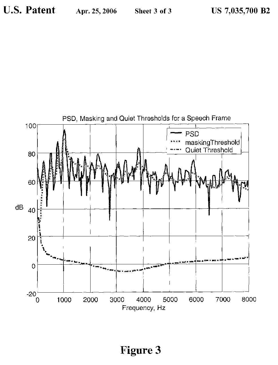 of speech the masker frequencies--tonal and noise-like--and their power levels