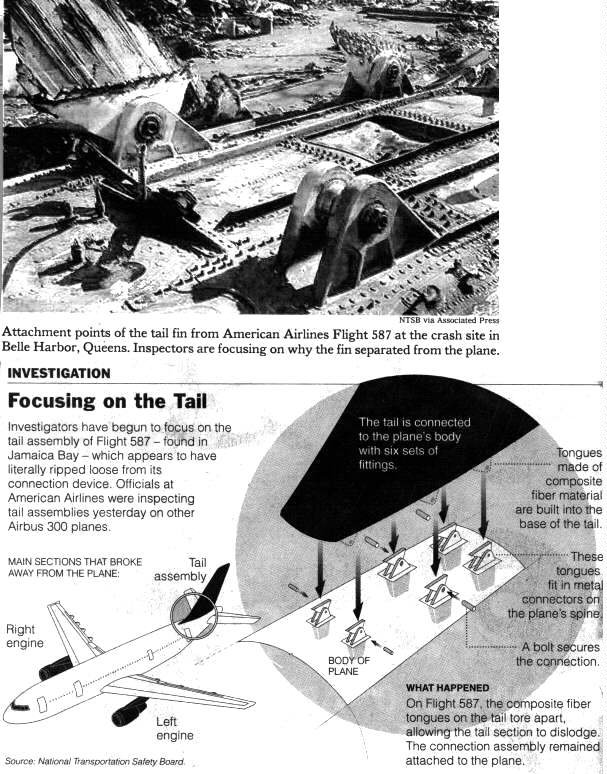 On November 12, 2001, an Airbus Model A300 B4-605R airplane was involved in an accident shortly after takeoff from John F. Kennedy International Airport, Jamaica, New York. The cause of the accident is under investigation by the National Transportation Safety Board (NTSB). Although the NTSB has not determined the cause of the accident, it has determined that the vertical stabilizer departed the airplane. In addition, the rudder was found separated from the vertical stabilizer.