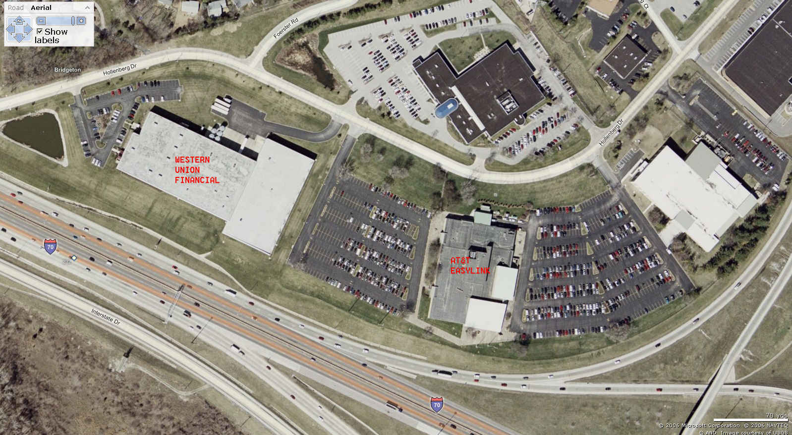 Western Union Financial Center, where worldwide telegram financial transactions are handled, is located next door at 13022 Hollenberg Drive: