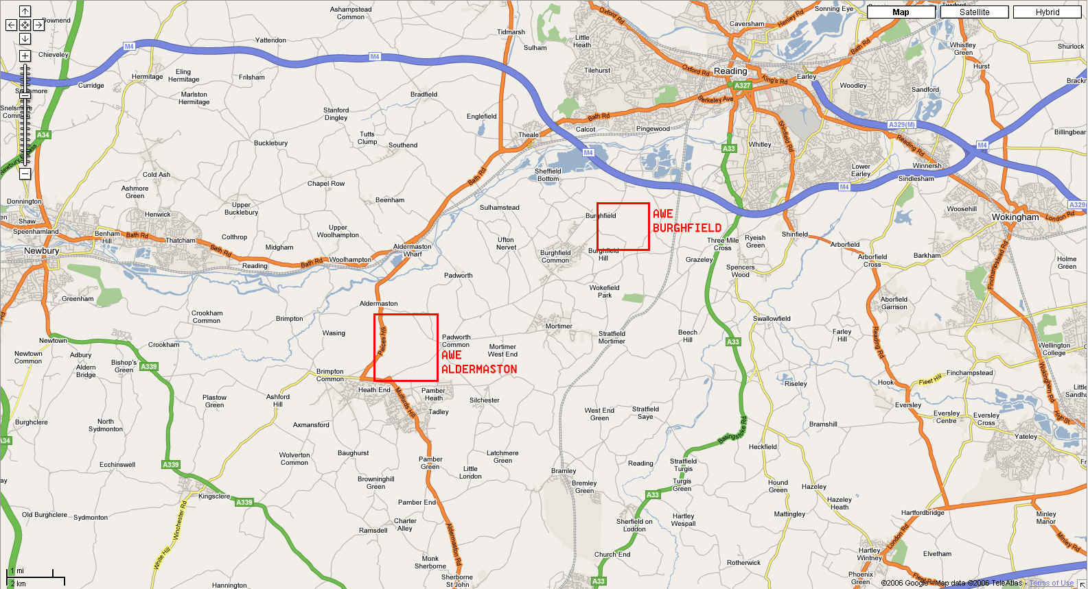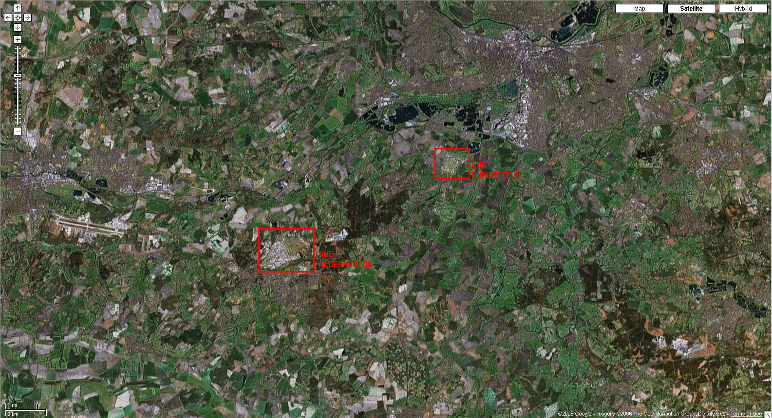 The UK's official mapping agency, Ordnance Survey (www.getamap.co.uk), has finally returned the Atomic Weapons Establishment (AWE) Burghfield, at Reading near London, to its most popular Landranger series 1:50000 scale maps, after over 30 years in the secrecy wilderness. The plant had been "airbrushed" from maps since 1974 and just appeared as farmers' fields, but with a suspicious dead end road leading to the middle of the empty space. An update to the more specialist 1:25000 data was made available in January 2005, but this latest revision to the more widely used product marks a significant milestone and sets a useful precedent.