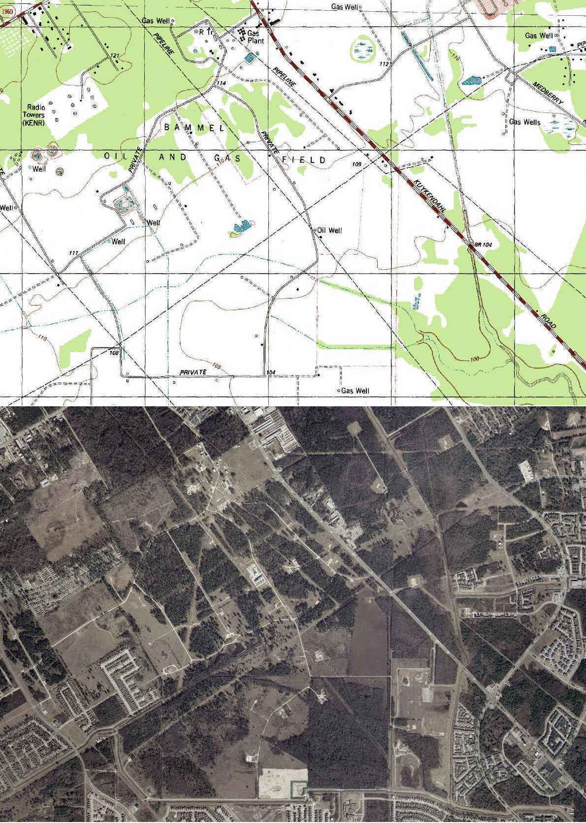 From 1942 to 1945 there was a spectacular surface/subsurface blowout from a casing leak in an oil and gas well in Bammel Field, Harris County, Texas. The oil and gas from the well severely impacted the surrounding fresh water aquifers. The results of the blowout to the aquifers were investigated and documented by geologists with the USGS from 1942 to 1945. After depletion of the oil and gas reserves in the subsurface reservoirs, Bammel Field was converted to an underground natural gas storage field.