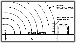 Air burst loads: For this type loading the explosion is located at a distance away from and above the door so that the ground reflections of the initial wave occur before the blast wave reaches the door.