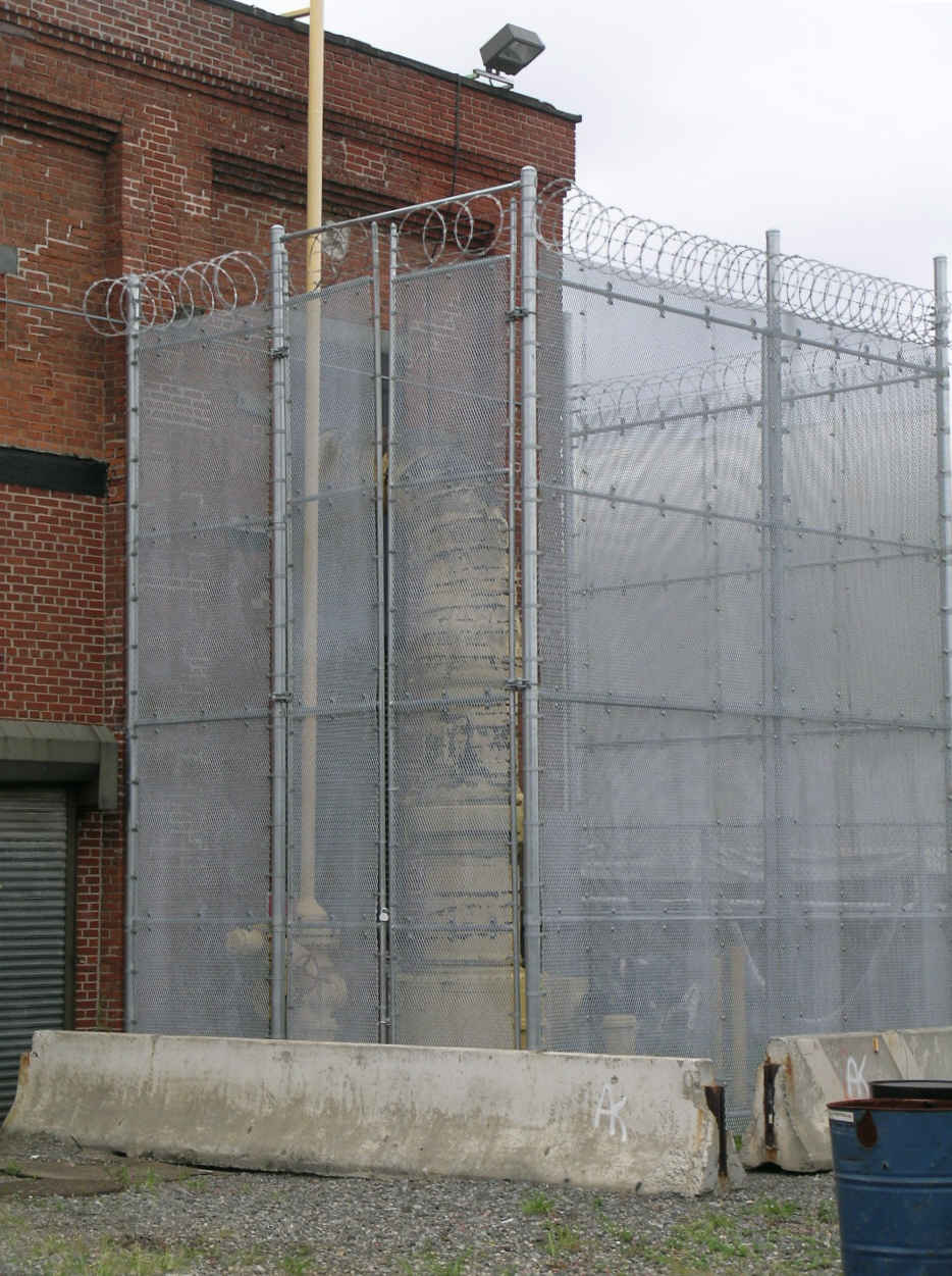 This photo shows a security fence and concrete barricades around the gas