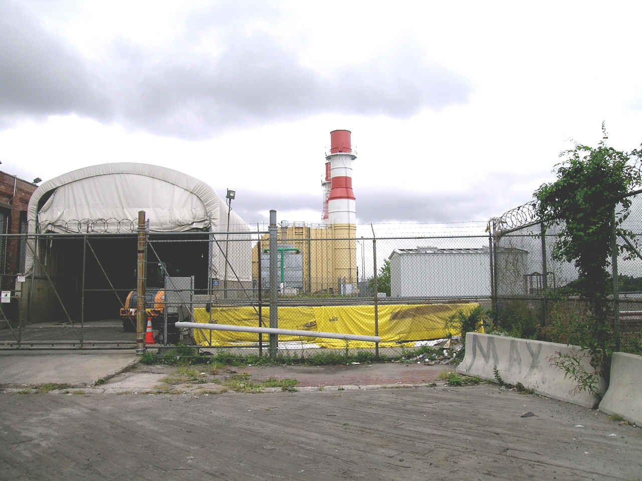 Looking north toward the adjoining power plant. Canvas shelter is
