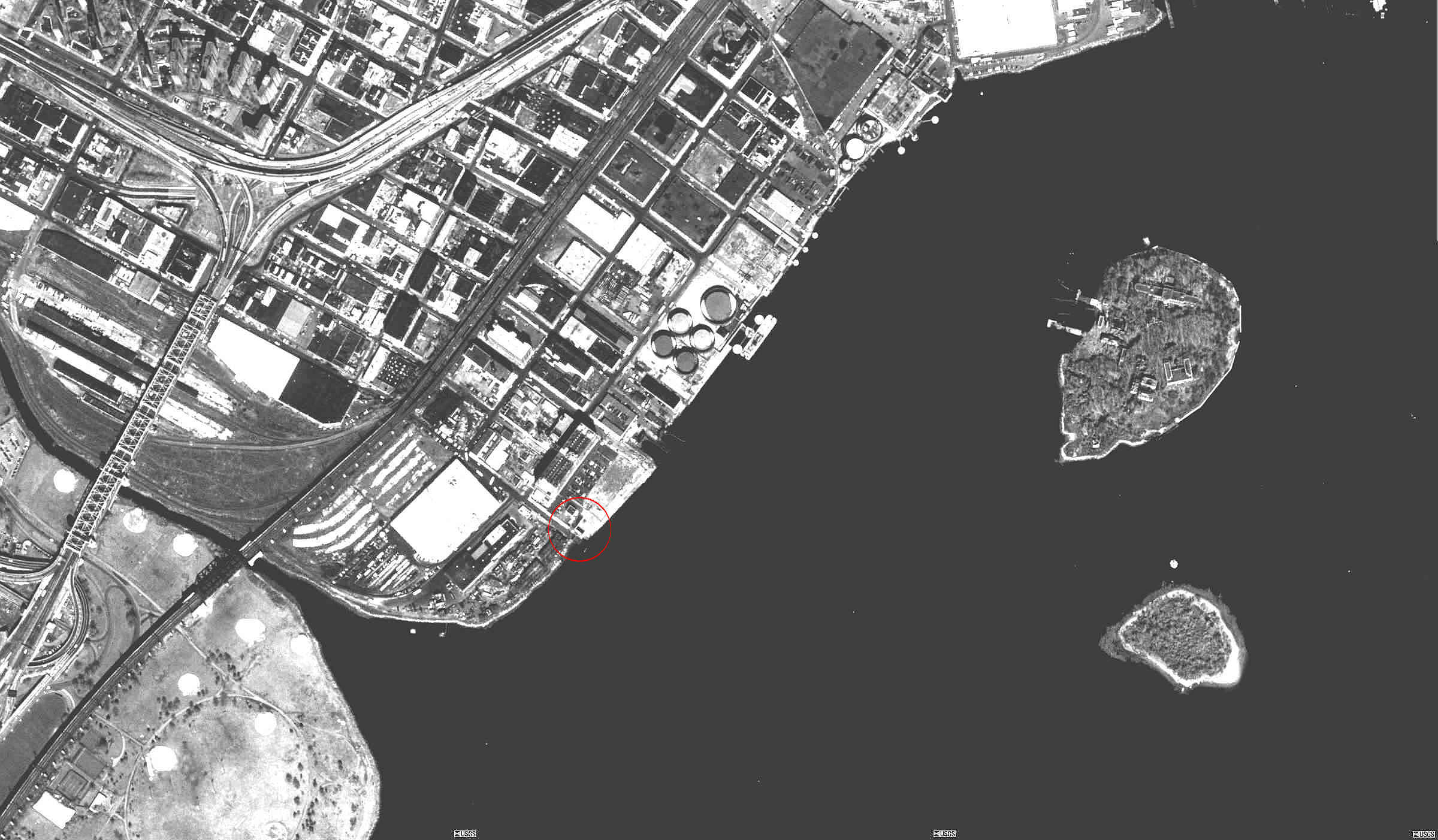 site from the East River. Gate to facility at left.