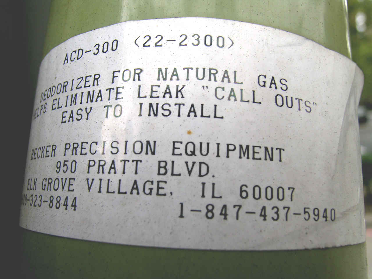 http://www.bpe950.com/becker/products/supply-gas/sg-acd300.htm Description: The ACD-300 Activated Charcoal Deodorizer is designed to remove odorant from natural gas "bleed" associated with natural gas control instrumentation. The ACD-300 saves money by minimizing leak call outs in populated areas. The ACD-300 may be installed on all Becker Precision Equipment control instrumentation that discharges natural gas to atmosphere. The ACD installs on the vent exhaust port of the control instrument and is applicable for units that "bleed" constantly or intermittently. The Becker ACD-300 contains a specially impregnated activated charcoal component that provides greater absorption of natural gas odorant as compared to other types of charcoal deodorant. ACD-300's are sold in prepackaged quantities of four (4) per box.