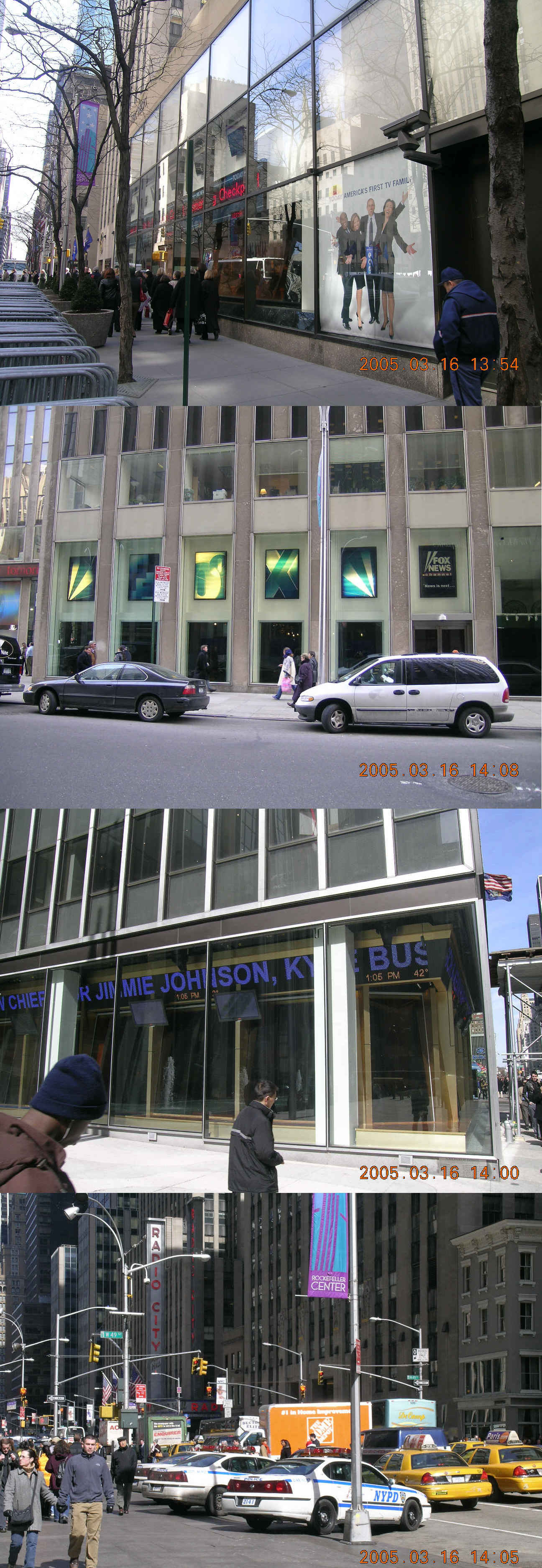 Now the Real News: Network Broadcast DesksNBC, Fox News and CNN, below, top to bottom, have unprotected glass-front street level national broadcast desks, all within a block or two of each other in the densest medial concentration in the world. Nearby is a police flying squad of vehicles ready take the talking heads to safety if not the whole carcasses. |