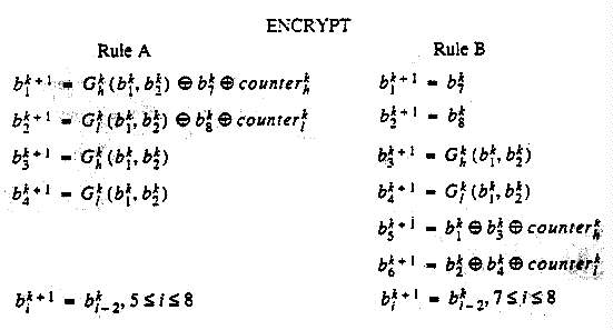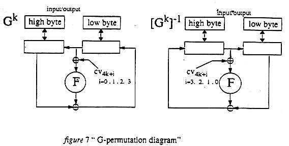 a. G permutes b1 and b2 as a word (b1 is the high-order byte and b2 is the low-order byte)b. the new b1 is the xor of the high-order byte of the G output, the high-order byte of the counter, and b7
