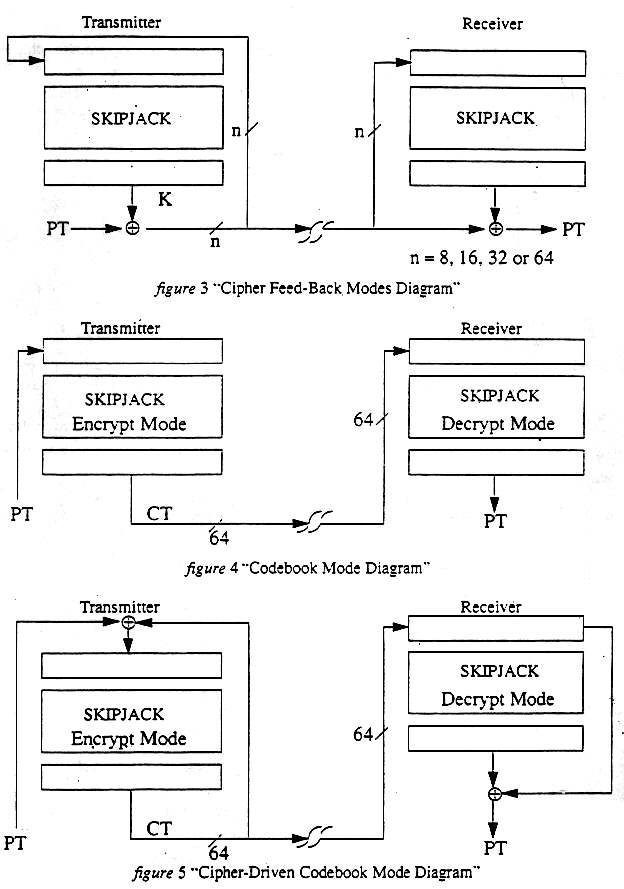 1. (U) CAPSTONE uses the SKIPJACK codebook for encryption. SKIPJACK is a 64 bit codebook utilizing an eighty bit cryptovariable. Modes of operation are a subset of the FIPS-81 description of modes of operation for DES. These include the following: