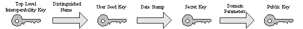 Send and receive keys are deterministically generated from top level interoperability keys (IKs). The Certificate Management Authority first generates a seed key from a function of the user's distinguished name and a top level interoperability key. The secret send and receive keys are generated from a function of this seed key and a datestamp. Public keys can then be generated from the secret keys and the domain parameters. The public receive key is stored with the datestamp in a Receive Certificate, the public send key is stored with the datestamp and the domain's parameters in a Send Certificate, and the seed keys distributed to the user within a Secret Key Token, through secure channels to the user. Receive Certificates are always appended to the enciphered token, to allow the recipient to identify the appropriate seed key required to regenerate the secret receive key. The public confidentiality keys and seed keys are linked by a seed key identifier.