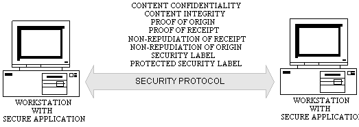 The security protocol is made up of a secure data packet and a secure data receipt. The secure data packet provides a secure means of transferring information from one location to another, where the information may be any form of data object processed by an IT system, eg. mail message (P772, P22, proprietary, etc.), data files (wordprocessor data, spreadsheet data, database data, etc.), etc. It supports a number of security services on a writer-to-reader basis, however this does not prevent intermediate devices, such as guards and gateways operating on the protocol. The following security services are supported by the protocol