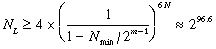 Proof: The relationship in a CAST cipher between the minimum nonlinearity of the m×n substitution boxes in the round function (Nmin), the number of rounds in the overall cipher (N), and the number of known plaintexts required for the recovery of a single key bit with 97.7% confidence (NL) has been given by Heys and Tavares [23]: