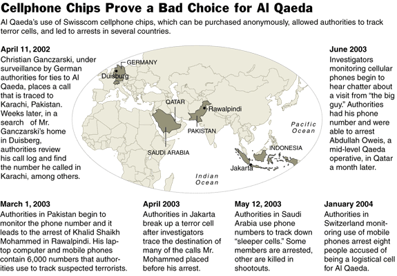 Last year, Switzerland's legislature passed a law making it illegal to purchase cellphone chips without providing personal information, following testimony from a Swiss federal prosecutor, Claude Nicati, that the Swisscom cards had become popular with Qaeda operatives. The law goes into effect on July 1.