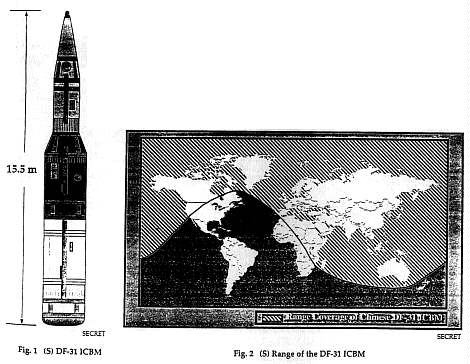 The DF-31 ICBM will give China a major strike capability that will be difficult to counterattack at any stage of its operation. It will be a significant threat not only to US forces deployed in the Pacific theater, but to portions of the continental United States and to many of our allies (S)