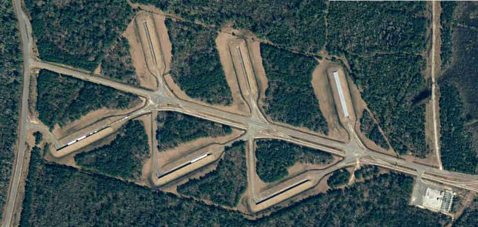 security system seen at other nuclear weapons storage facilties. The other 1/3 has a single fence system. It is possible the single fence system is later and has more advanced features than the double fence.A feature of both systems is that the fence segments are straight lines, perhaps indicating the fencing is in tension as a vibration sensor of tampering. The straight runs may also indicate presence of laser or other direct beam sensors. Visual or other biometric surveillance may be eased by the straight runs as well. Other sensors are likely placed below and on the surface of the cleared fence land. A guardhouse is located at the limited penetrations of the fence system except where it adjoins the single fenced area.