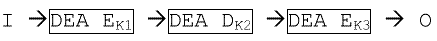 1. TDEA encryption operation: the transformation of a 64-bit block I into a 64-bit block O that is defined as follows:O = EK3(DK2(EK1(I))).
