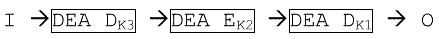 Let EK(I) and DK(I) represent the DEA encryption and decryption of I using DEA key K respectively. Each TDEA encryption/decryption operation (as specified in ANSI X9.52) is a compound operation of DEA encryption and decryption operations. The following operations are used: