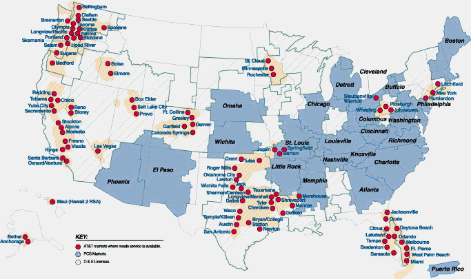 AT&T Digital PCS is currently being deployed around the U.S. and Canada. Seventy million potential customers in more than 40 metropolitan areas throughout the U.S. now have access to unparalleled convenience, value and increased peace of mind. These initial major markets include: