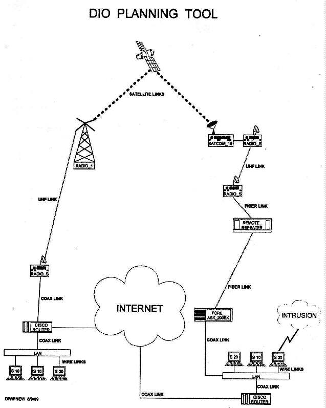 The completed DIO planning tool must be able to take in and produce various databases, including those that contain parameters for equipment models, deployments, interfaces with other networks, the physical environment, tasks and traffic, the threat environment, and scenario events that can change selected elements of the above. Graphical databases are used to provide tailored graphics, e.g., icons, lines, menus, query templates, and other user interface facilities.