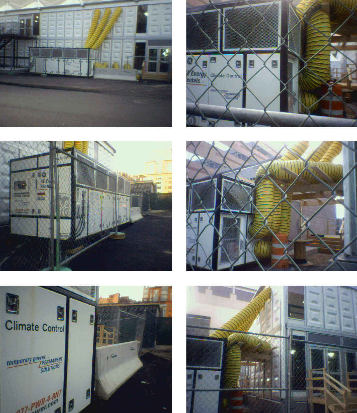 4. Unprotected Media Pavillion ventilation system.These modular generator and ventilation systems are extremely dangerous to use as the intakes are not protected, and the access doors into the system are not secure. This means that, currently, anybody could open and sabotage any of these systems. A biologic or radiological agent could be inserted here as such the system would ensure it is well distributed thoughout the complex very quickly. Also, due to the noise, strong smells, and vibration present in these modules someone with nefarious intentions could plant a fairly large (hundreds of pounds) infernal device. Note that these access panels are completely exposed and not protected, they are not blocked by a fence, and there is no police officer nor security people near any of them. |