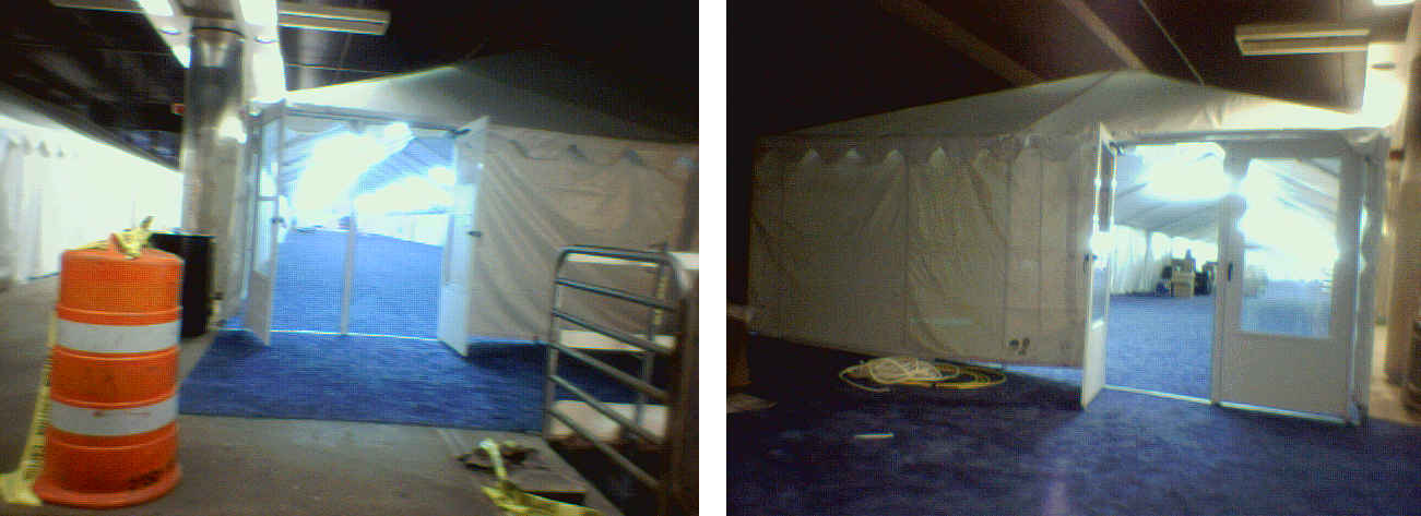 7. Unprotected temporary tents.These photos show a temporary tents being provided which are unprotected during installation. |