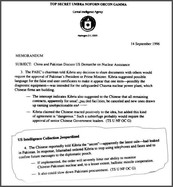 which deals with Chinese and Pakistan nuclear collaboration appears as a