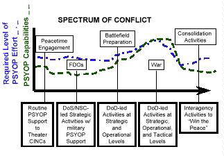 The Task Force focused on current and future technologies for the dissemination of PSYOP products, organizational issues, and mission needs and requirements. However, the use of PSYOP in military operations must be viewed as an integral part of the operation, and not as an afterthought. For PSYOP to be most effective, efforts must be made to include PSYOP as part of an integrated information operation over all phases of conflict, from peacetime to hostilities.