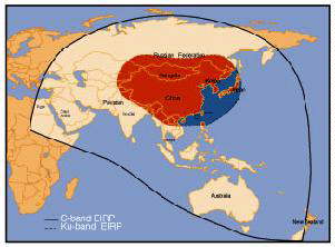 Figure 4.4 AsiaSat 2 TV and radio coverage in C and Ku bands