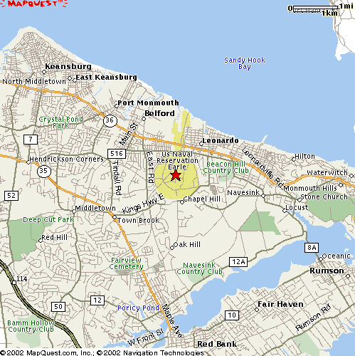 The pier stretches 2.2 miles into the Sandy Hook bay and comprises 2.9 miles of pier/trestle surface area. Earle continued to develop after World War II, keeping pace with the changing needs of the Navy. In 1974, Earle's name was officially changed to Naval Weapons Station Earle. The Station is divided into two sections: Main-side, located in Colts Neck, and the Waterfront Area, on Sandy Hook Bay, located in the Leonardo section of Middletown. Both areas are connected by Normandy road, a 15-mile military road and rail line.