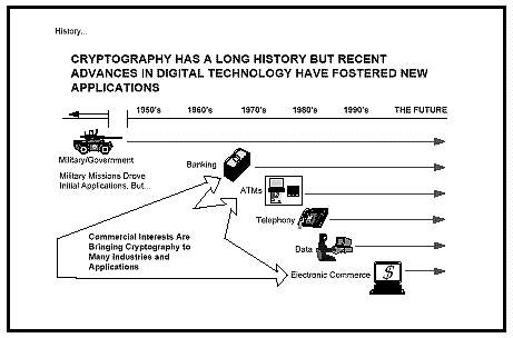 USES AND BENEFITS OF ENCRYPTION Governments have always been very concerned with the secrecy of information related to military, economic and foreign policy issues. For many years, military and government missions drove the development and use of applications for encryption. Protecting one's intentions from an opposing party is critical and for that reason information security is very important. Although encryption software and hardware devices have been commercially available for years, their cost, degradation of voice quality, and user "friendliness" have, in the past made these devices unattractive to the general public. The introduction of digitally-based technologies as well as the widespread use of computers and computer networks which may incorporate privacy features/capabilities through the use of encryption are facilitating the development, production, and use of affordable and robust commercially-available encryption products and services for use by the general public. These encryption systems provide robust security for conventional and cellular telephone conversations, facsimile transmissions, local and wide area networks, communications transmitted over the Internet (E-mail, etc.), personal computers, wireless communications systems, electronically stored information, remote keyless entry systems, advanced messaging systems, and radio frequency communications systems.